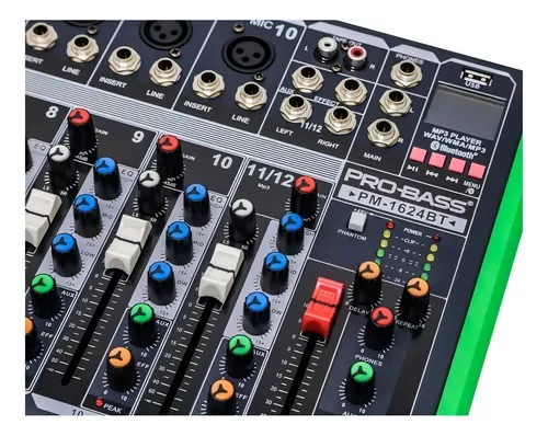 • Entradas: XLR, P10, RCA, USB, SD, Bluetooth
